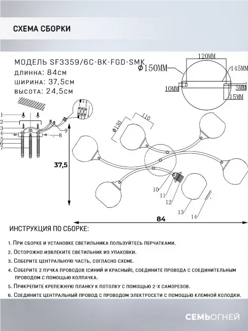 Потолочная люстра Seven Fires Lammert SF3359/6C-BK-FGD-SMK