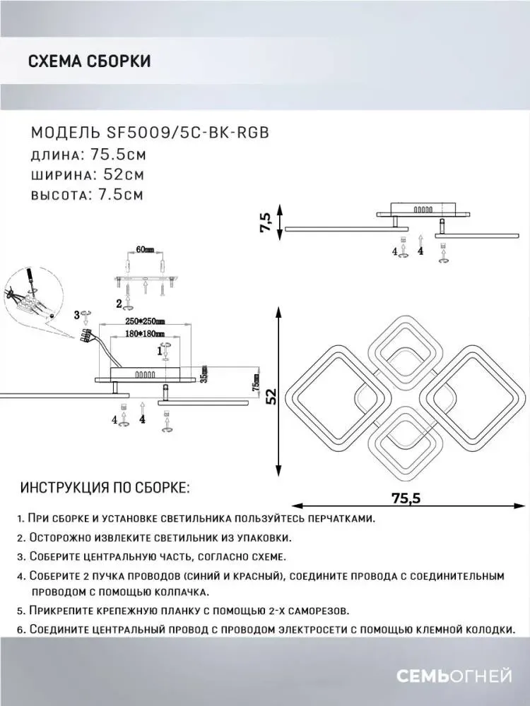 Потолочная люстра Seven Fires Karoli SF7105/5C-WT-RGB