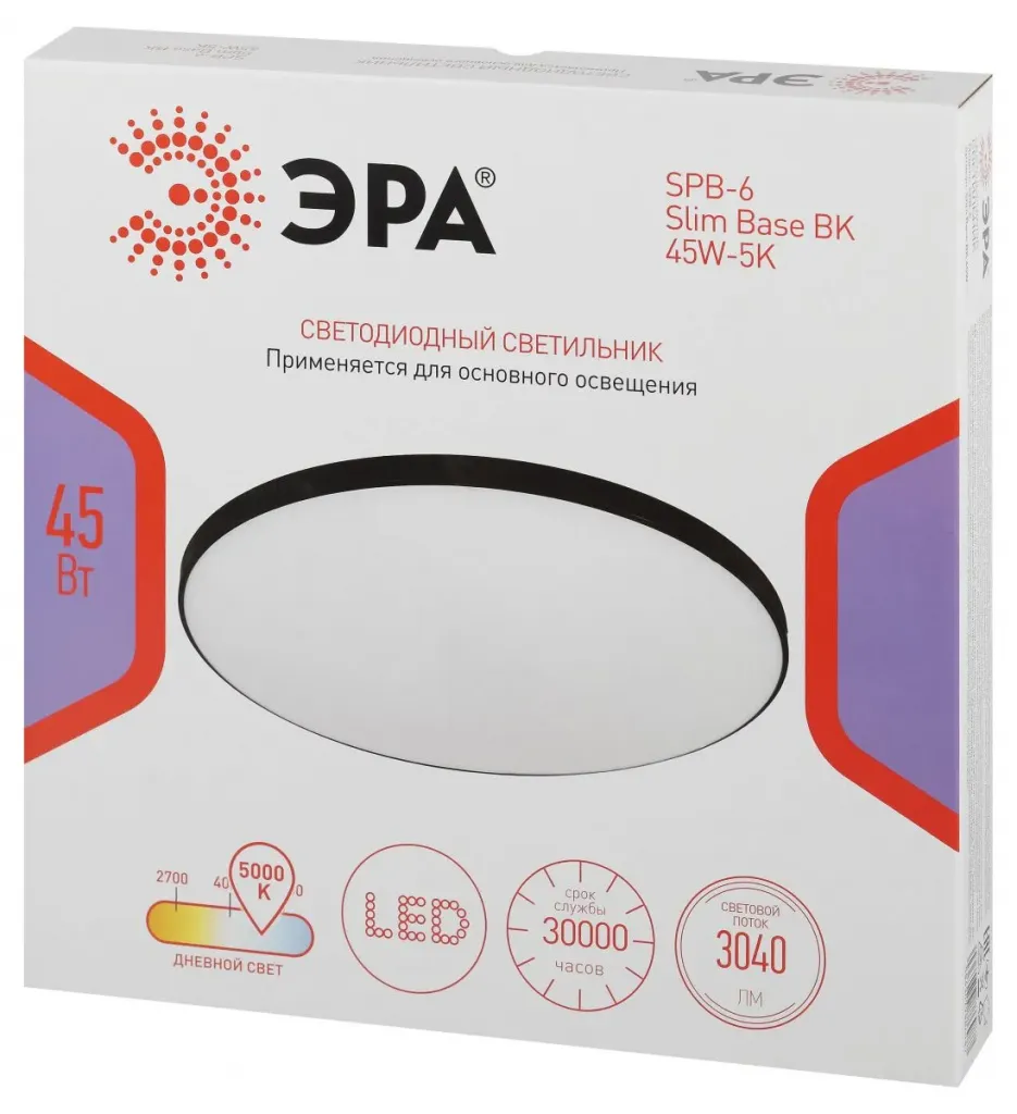 Потолочный светильник Эра Классик без ДУ SPB-6 BK 45W-5K Slim Base