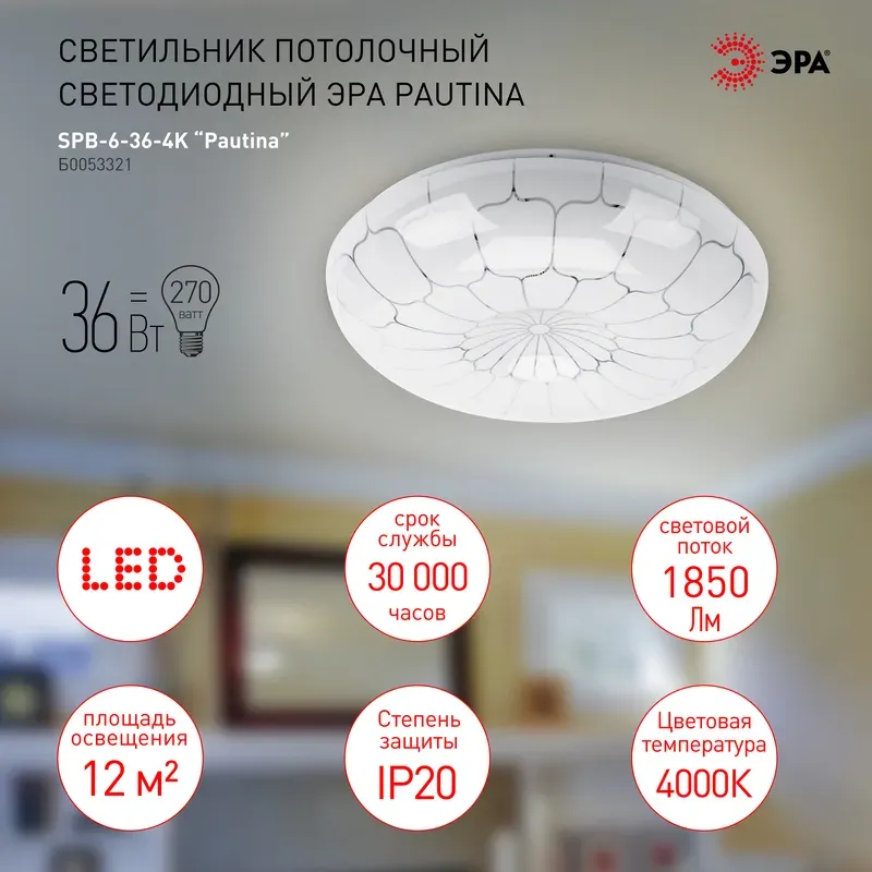Потолочный светильник Эра SPB-6-36-6,5K Pautina Б0053322
