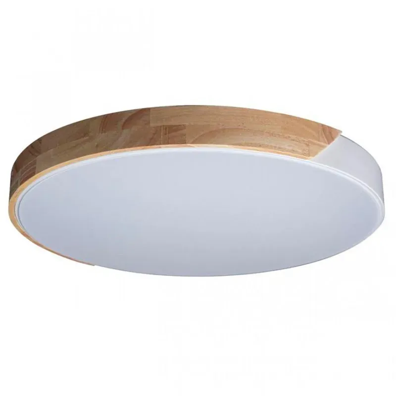 Потолочный светильник круглый из стали с декоративными вставками из дерева Maelis White