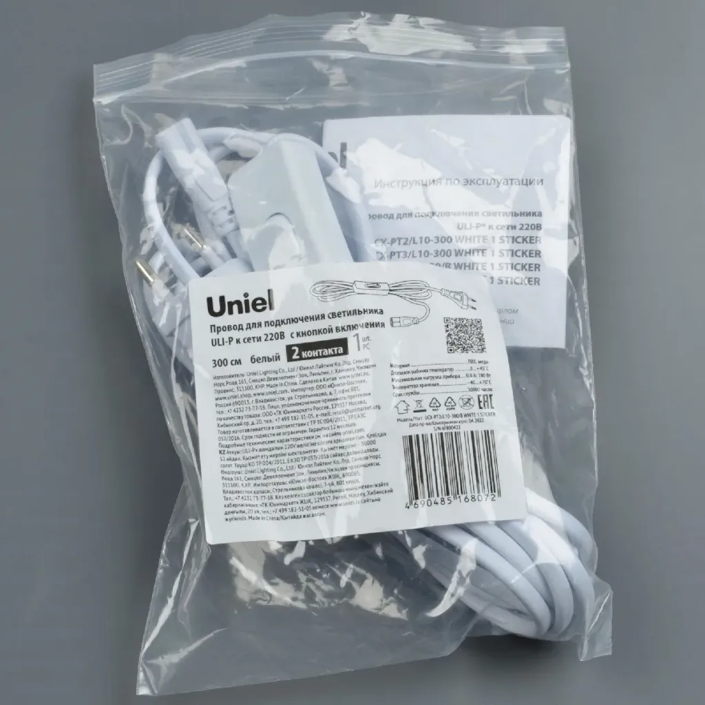 Провод Uniel UCX-PT3/L10-300/B WHITE 1 STICKER UL-00009803