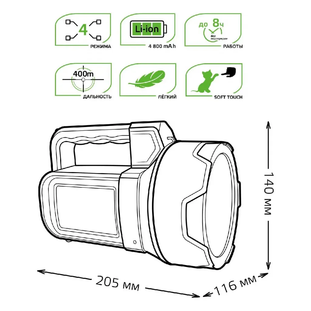 Прожекторный светодиодный фонарь Gauss аккумуляторный 215х145 200 лм GF601