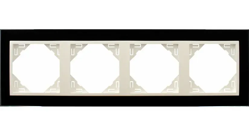 Рамка четверная для горизонтального и вертикального монтажа, черное стекло/лёд, 90940 TEG