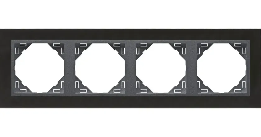Рамка четверная для горизонтального и вертикального монтажа, черное стекло/серый, 90940 TES