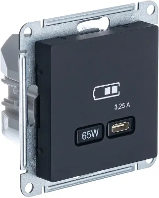 Розетка тип-C 65W высокоскор.заряд. QC, PD, мех. Systeme Electric AtlasDesign Карбон USB ATN001027