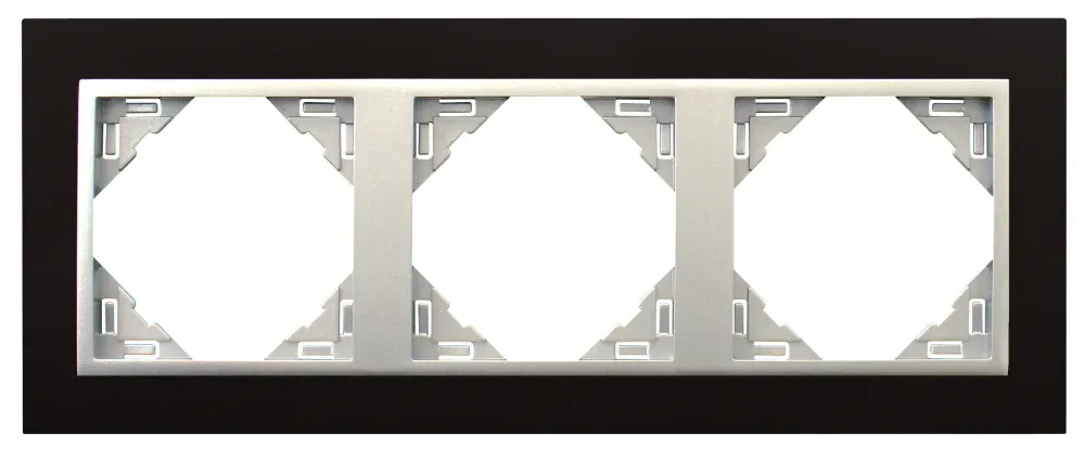 Рамка тройная для горизонтального и вертикального монтажа, черное стекло/алюминий, 90930 TEA