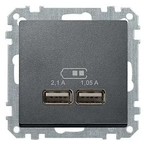 GSL001333 USB РОЗЕТКА A+A, 5В/2,1 А, 2х5В/1,05 А, механизм, ГРАФИТ Glossa Schneider Electric