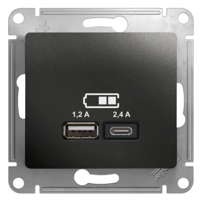 GSL000739 USB РОЗЕТКА A+С, 5В/2,4А, 2х5В/1,2 А, механизм, АНТРАЦИТ Glossa Schneider Electric