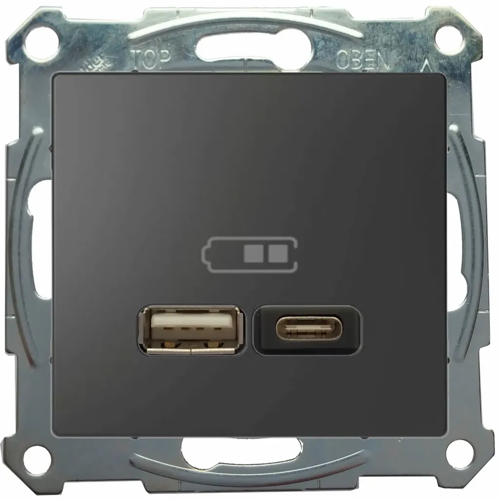 Розетка 2-я USB 2.4 A+C Merten D-Life Антрацит MTN4366-0110+MTN4367-6034