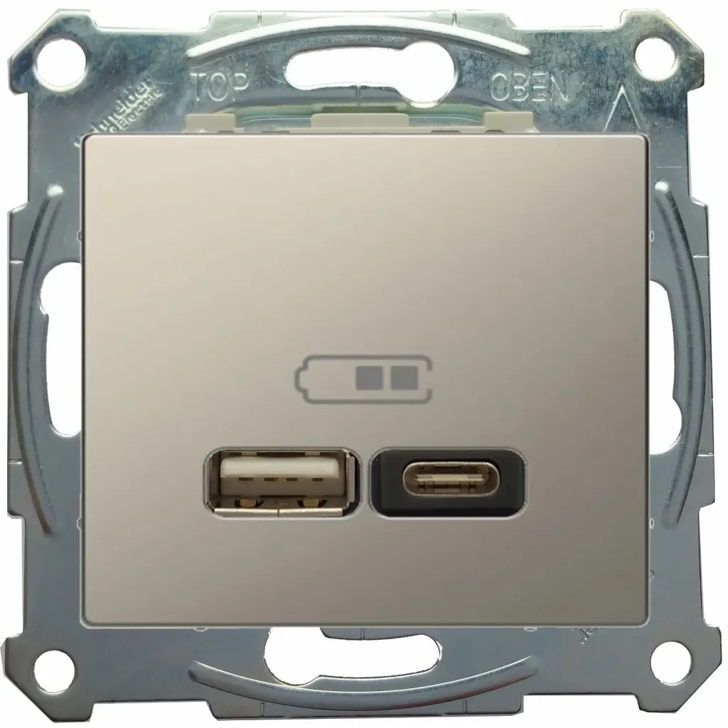 Розетка 2-я USB 2.4 A+C Merten Серия M Бежевый MTN4366-0110+MTN4367-0344