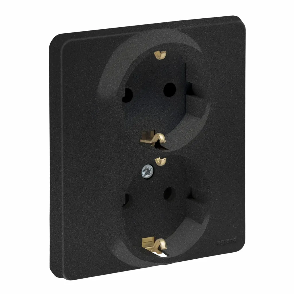 672633 Розетка 2 x 2К+З со шторками - немецкий стандарт - автоматические зажимы - 16 А - 250 В~ - Etika - антрацит Legrand