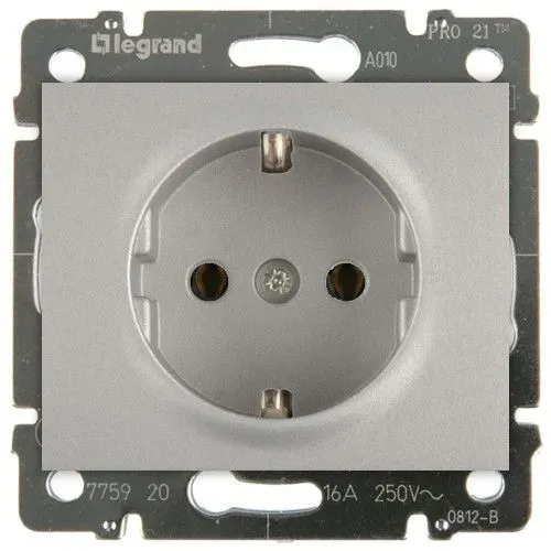 Розетка 2К+З, немецкий стандарт, винтовые клеммы Legrand Galea Life Алюминий 775921+771320