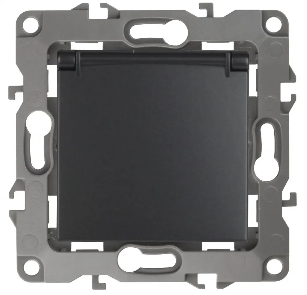 Розетка 2P+E Schuko со шторками с крышкой Эра 12-2103-15 Б0019330