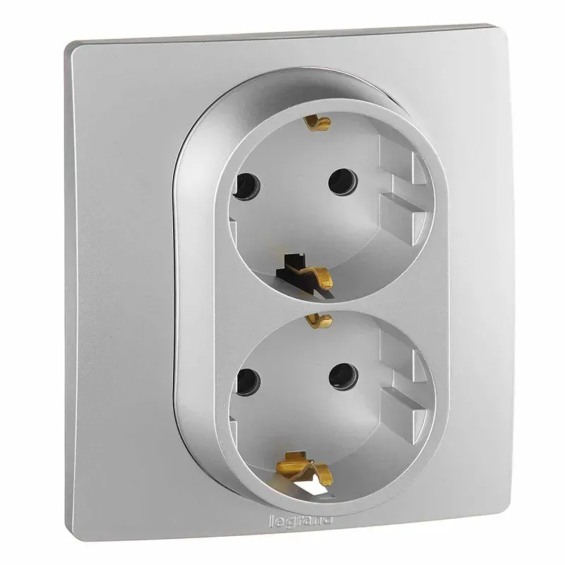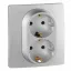 Розетка 2X2К+З Legrand Etika 16A 250V с/з винтовой зажим немецкий стандарт алюминий 672423