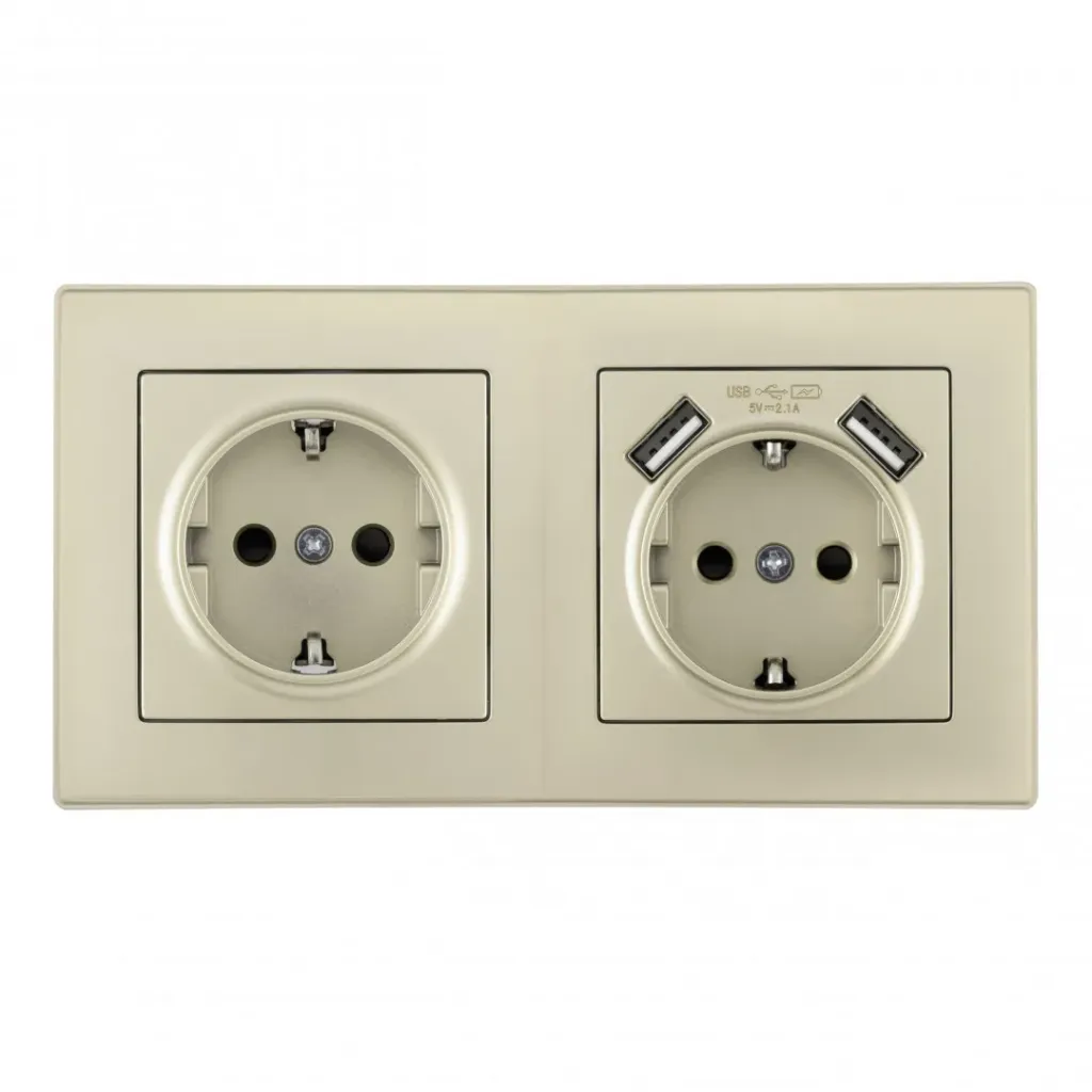 Розетка двойная (двухпостовая) с USB Arte Milano SET06-2-47-1-40-1 shampan
