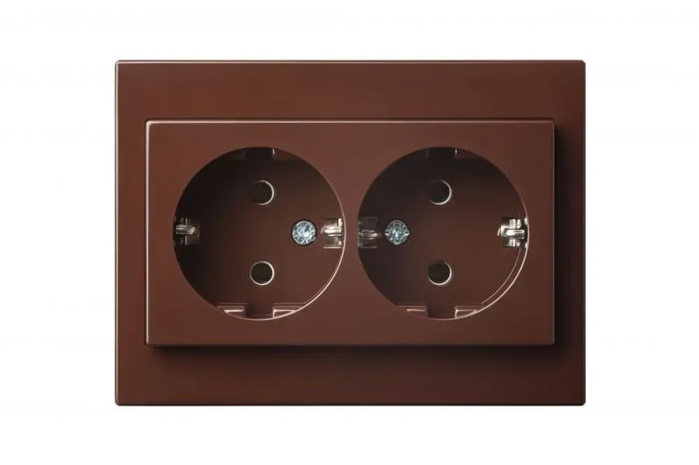 Розетка двойная с заземлением Liregus Epsilon безвинтовой зажим, 16A/250В, коричневый 28-1365
