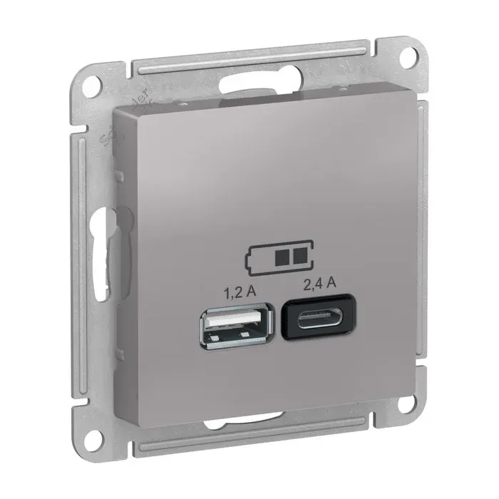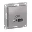 Розетка двойная USB тип A+С, 5В/2,4А, 2х5В/1,2А, Schneider Electric Atlasdesign 16А, алюминий ATN000339