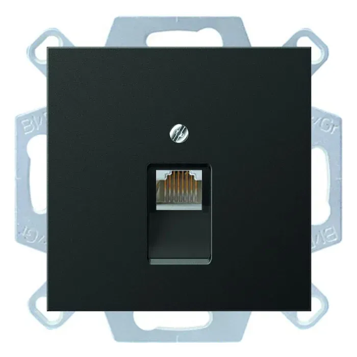 Розетка компьютерная 1-ая наклонная 6 кат UAE Jung A flow Чёрный матовый EPUAE8UPOK6+A569-1BFPLUASWM