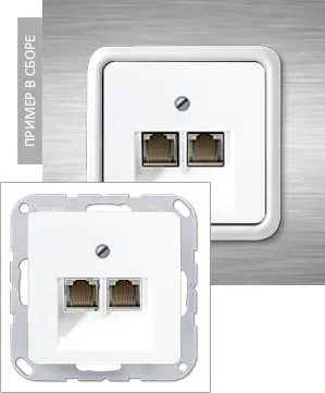 Розетка компьютерная 2-ая наклонная 6 кат UAE Jung A flow белый матовый EPUAE8-8UPOK6+A569-2BFPLUAWWM