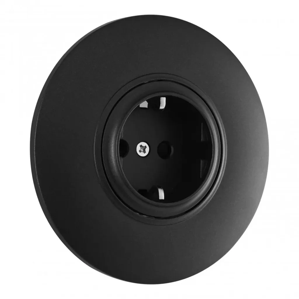 Розетка круглая с/з и шторками и рамкой Arte Milano SET08-1-40-1 black