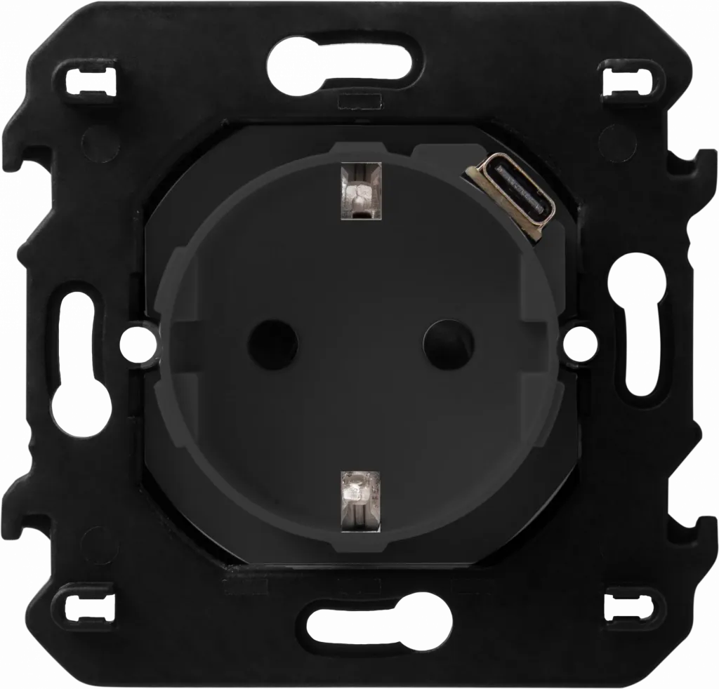Розетка нем.ст. 2К+З со встр.зарядкой USB C + супп.2м ~250В 16А/=5В 1.5А 2 м. черный