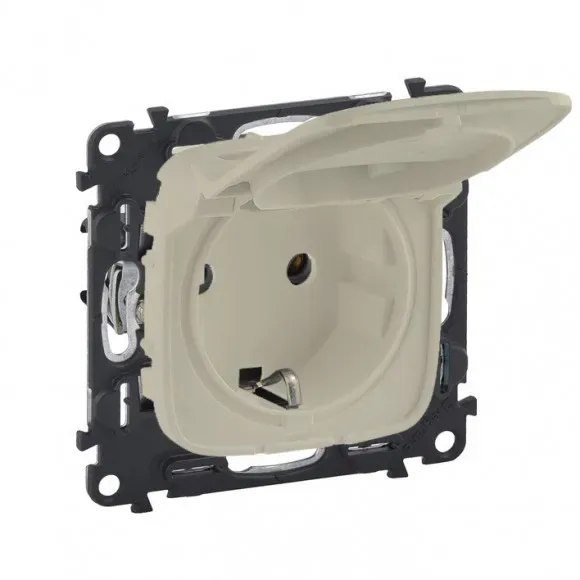 672332 Розетка 2К+З IP 44 с откидной крышкой и шторками - немецкий стандарт - автоматические зажимы - 16 А - слоновая кость Legrand