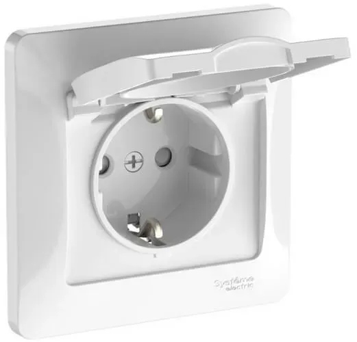 Розетка с зазем. со шторк. с крышк., 16А, IP20, в сборе, быстрозажим. клем. Systeme Electric Glossa Белый GSL000146S