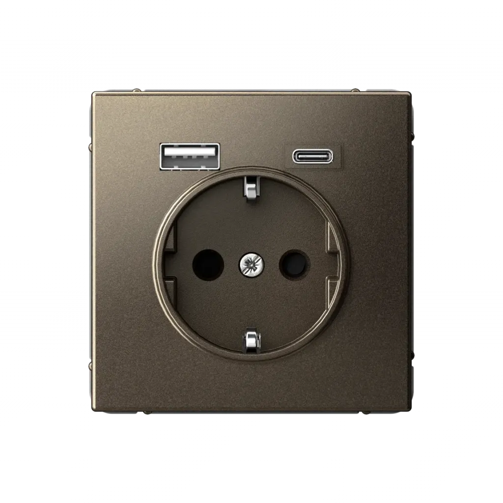 Розетка с заземлением 16А+2USB A+С, (5В/2,4А/3 А, 2х5В/1,5А) System Electric ArtGallery, базальт GAL001432
