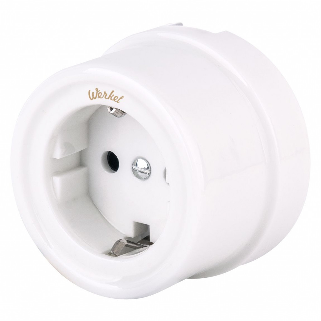 Розетка с заземлением и шторками Werkel Retro керамика, белый A051312