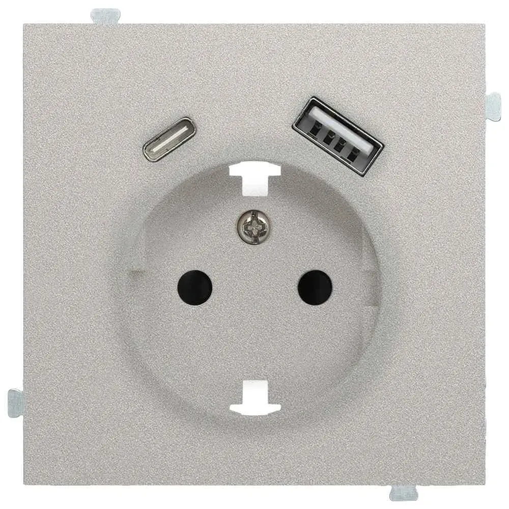 Rikett Лицевая панель для розетки 2к+з с USB A+C платина 35637 PL