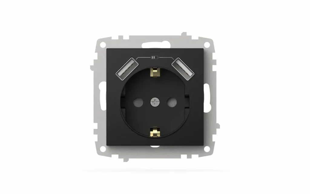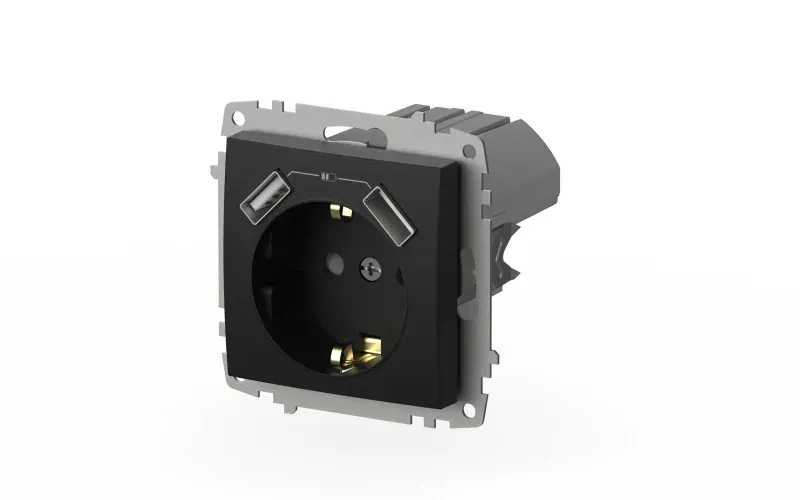 Розетка с заземлением и защитой от детей + два входа USB для заряда устройства ELBI Zena Vega 609-015600-317