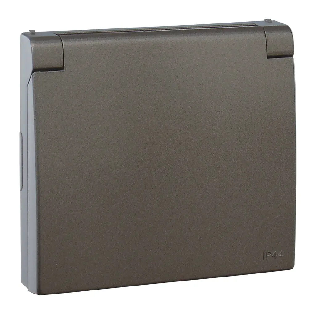 Розетка с заземляющими контактами 16 А / 250 В, с откидной крышкой IP44, графит 21130 + 50634 TGR