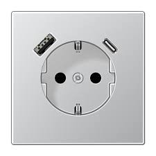 AL1520-15CA-L алюминий Розетка SCHUKO® с USB-интерфейсом с 1 гнездо USB типа A и 1 гнездо USB типа C LS серия