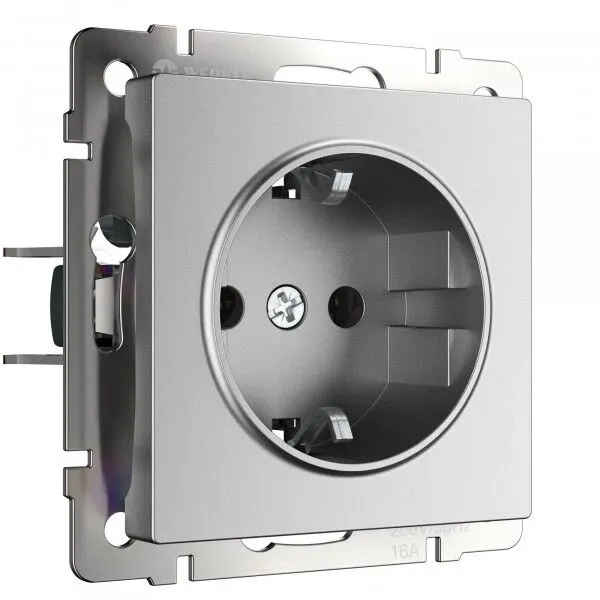 Розетка с заземлением Werkel 16A/250В, винтовой зажим, серебряный матовый A063612