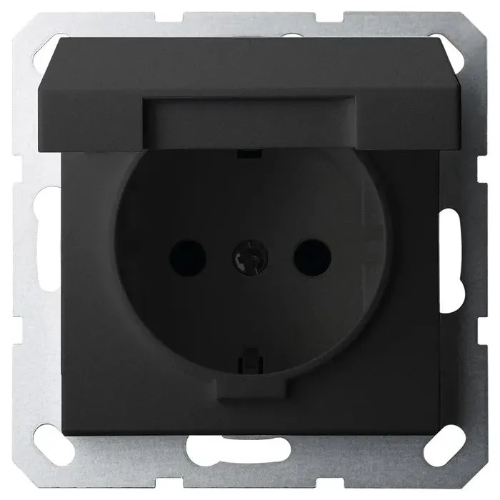 Розетка SHUKO Jasmart с крышкой с защитными шторками черный матовый (soft touch) 16A 250V 2P+T G5505PB
