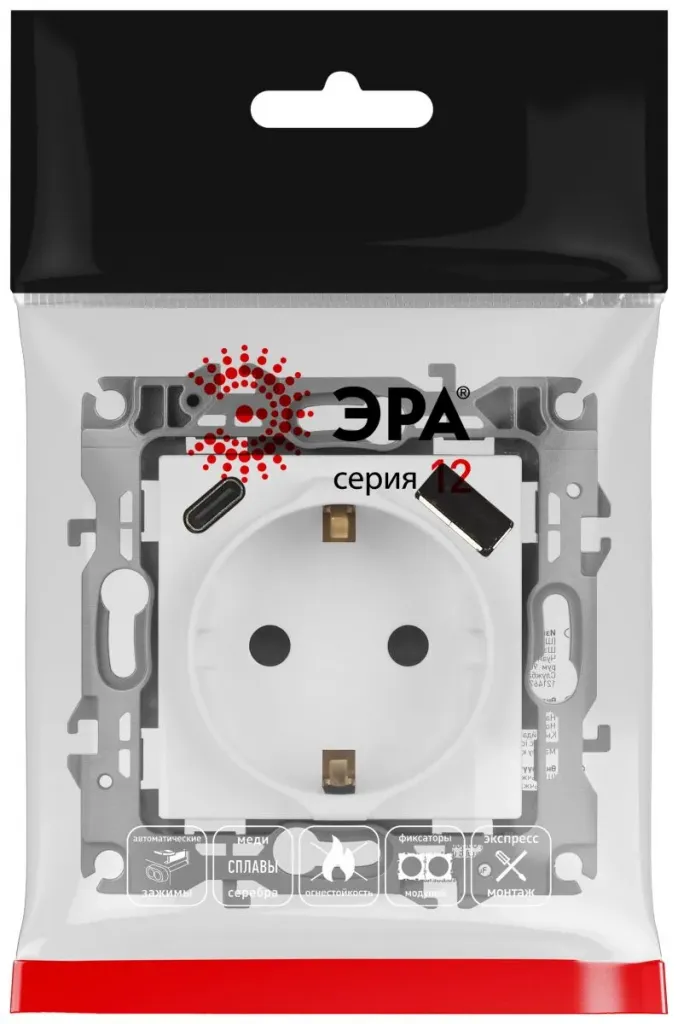 Розетка со шторками с USB type-A+C Эра 12-4108-01 Б0067752