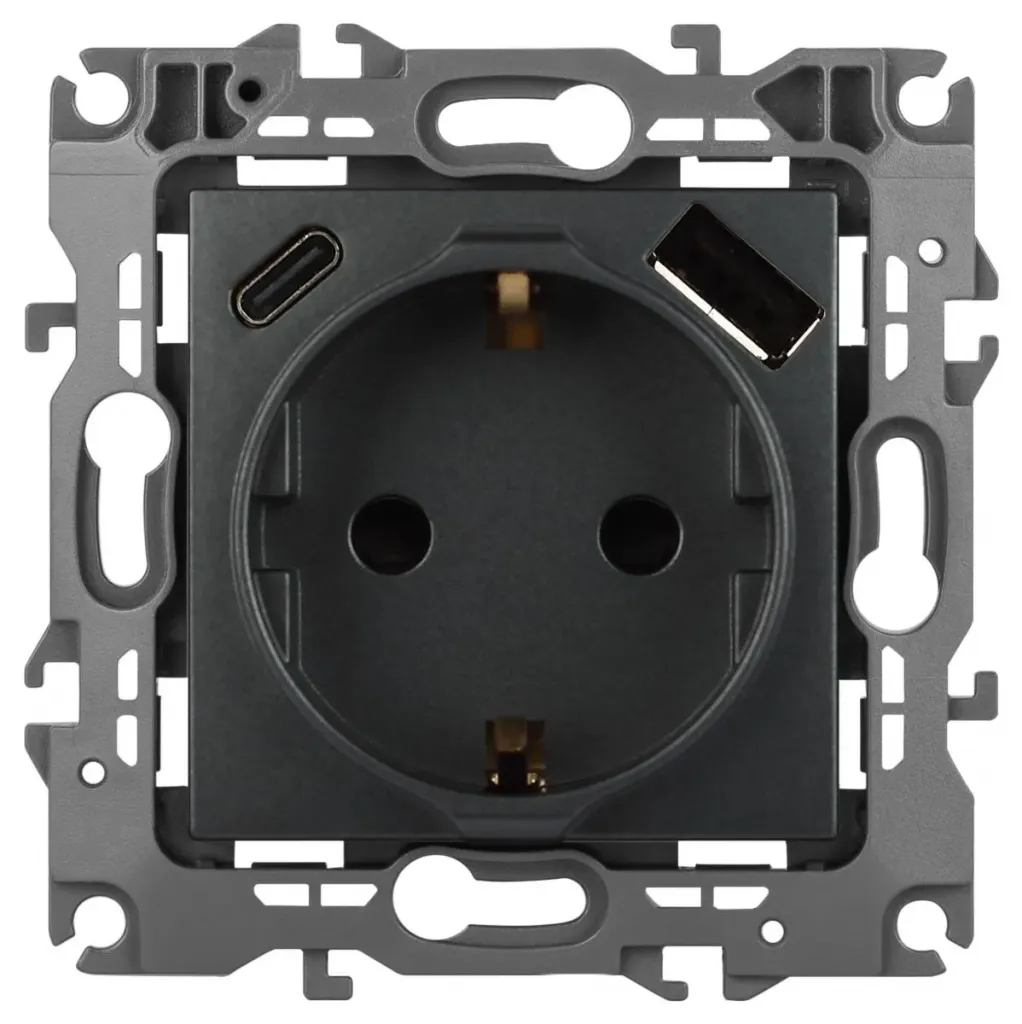 Розетка со шторками с USB type-A+C Эра 12-4108-05 Б0067707