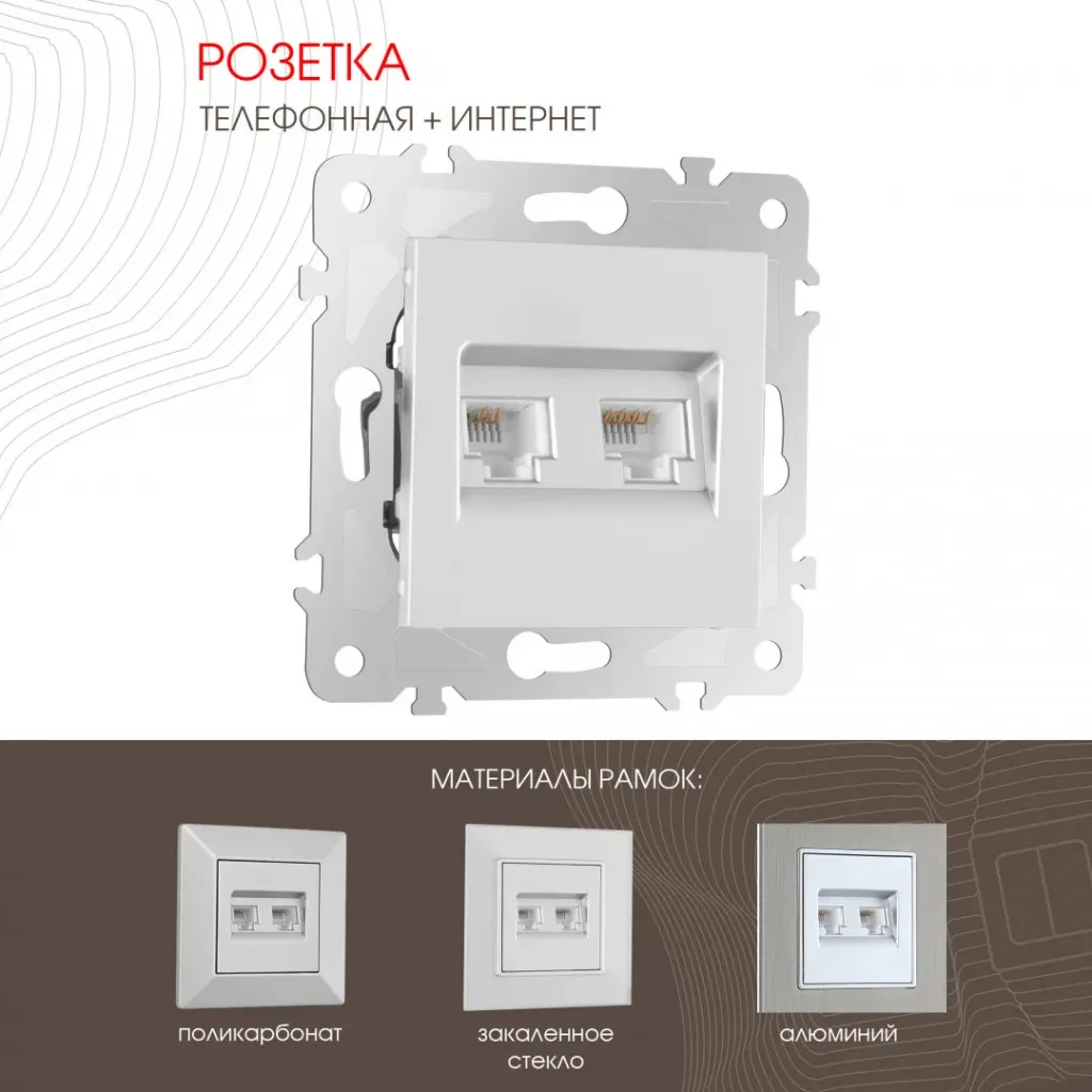 Розетка телефонная RJ11 + компьютерная RJ45 Arte Milano 206.44-1.white