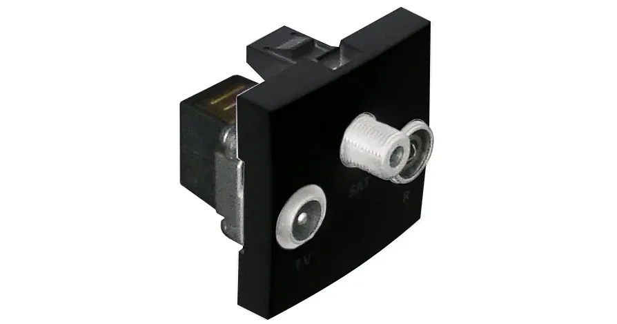 ТВ/Радио/Спутник розетка проходная - 2 модуля, черный, 45565 SPM