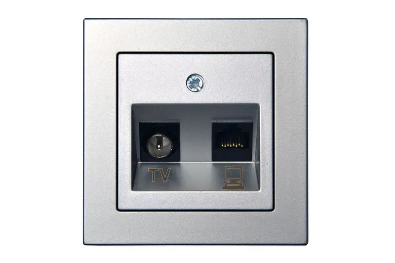 Розетка TV и интернет розетка RJ 45, cat.6 Liregus Epsilon, серебро 28-183