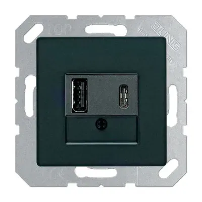 Розетка USB Тип A+C Jung A flow Черный USB15CASW+A569PLTSW