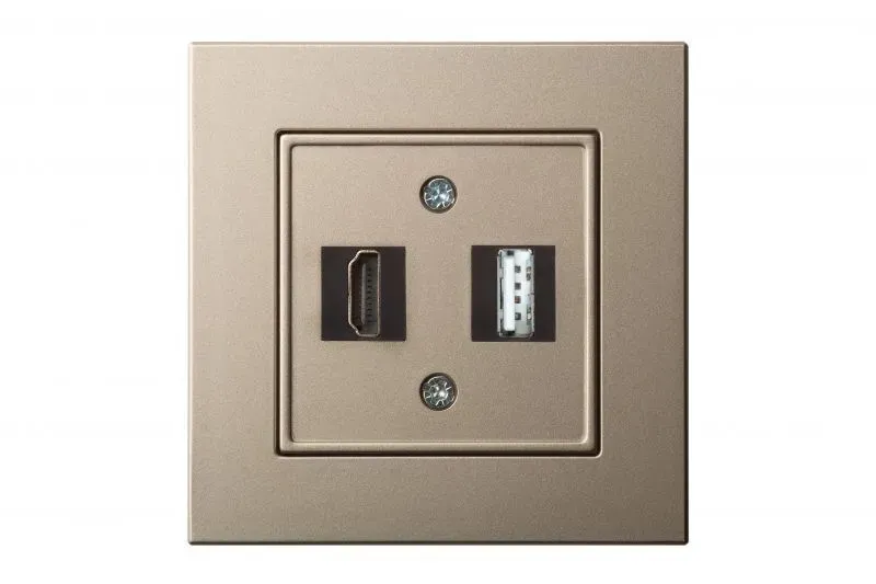 Розетка USB для передачи данных и HDMI Liregus Epsilon, шампань 28-3243