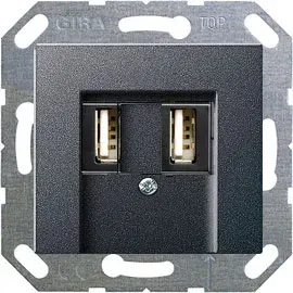 Розетка USB для питания 2 местный Gira Standart 55 Антрацит 235900+027628