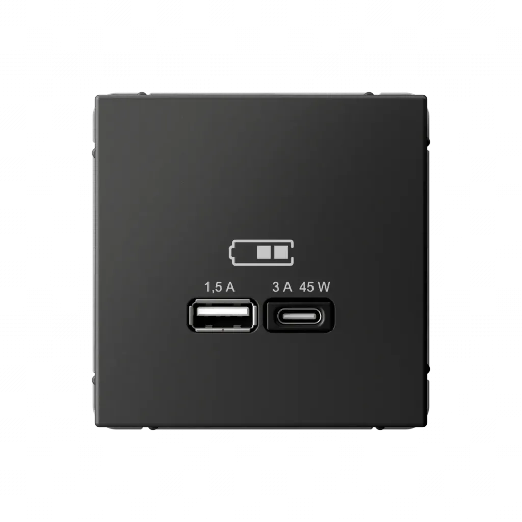 Розетка USB для зарядки двойная System Electric ArtGallery A + тип-C 45W высокоскор.заряд. QC, PD, базальт GAL001429