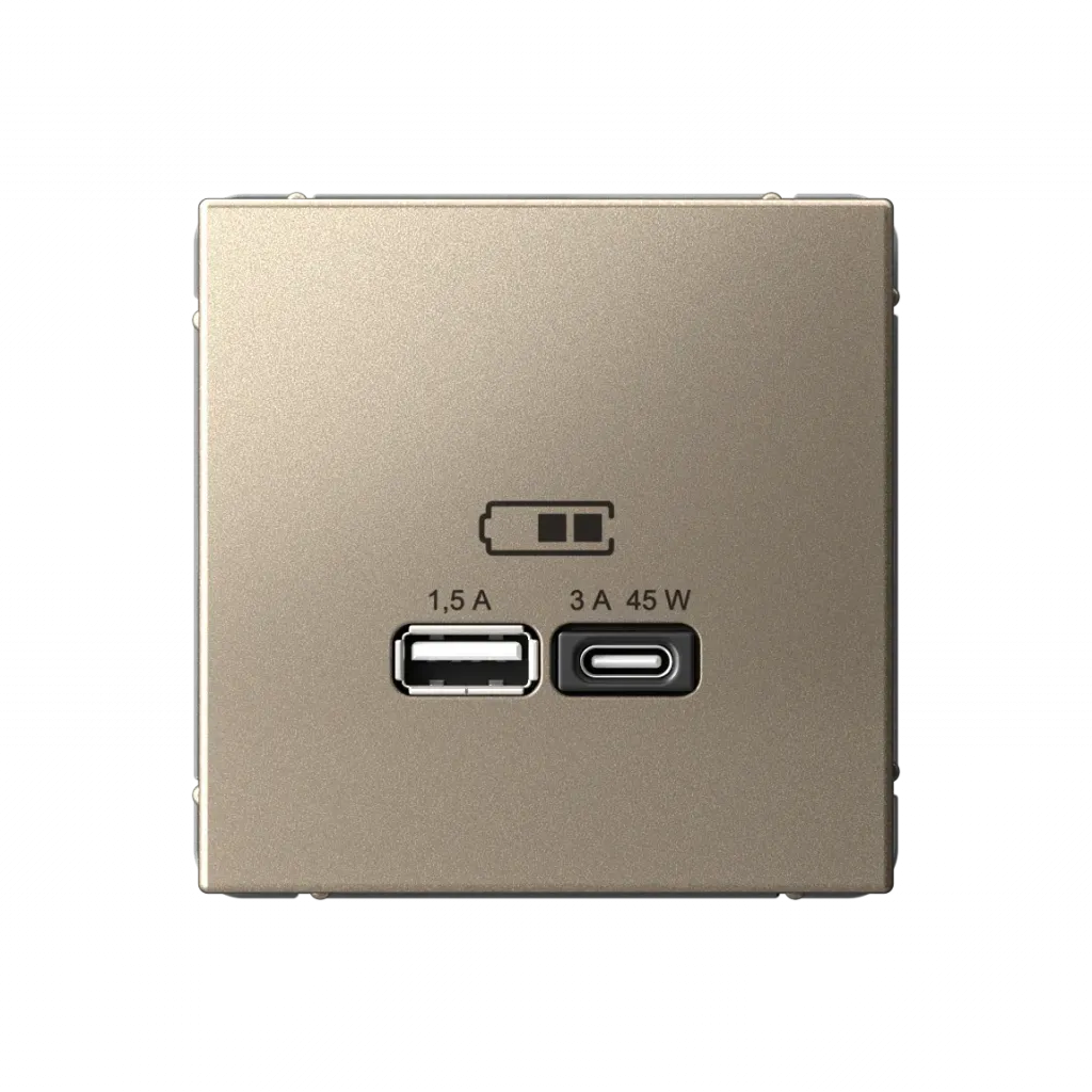 Розетка USB для зарядки двойная System Electric ArtGallery A + тип-C 45W высокоскор.заряд. QC, PD, шампань GAL000529