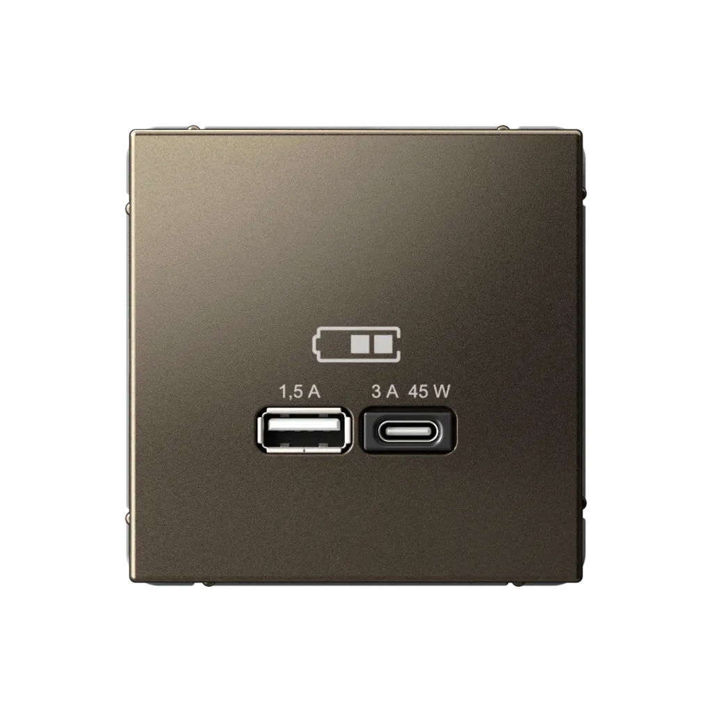 Розетка USB для зарядки двойная System Electric ArtGallery A + тип-C 45W высокоскор.заряд. QC, PD, базальт GAL001429