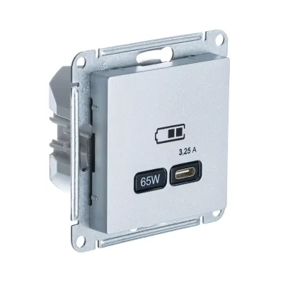 Розетка USB для зарядки Schneider Atlasdesign тип-C 65W высокоскор.заряд. QC, PD, алюминий ATN000327