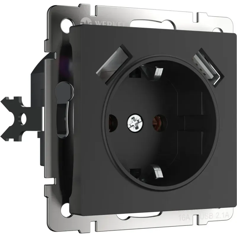 Розетка Werkel с заземлением, шторками и USBх2 черный матовый W1171508 4690389156915
