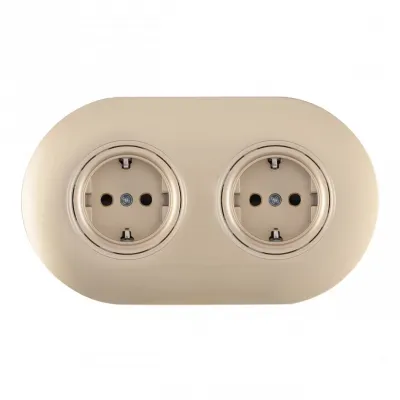 Круглая розетка двойная (двухпостовая) с/з и шторками Arte Milano SET08-2-40-1x2 shampan